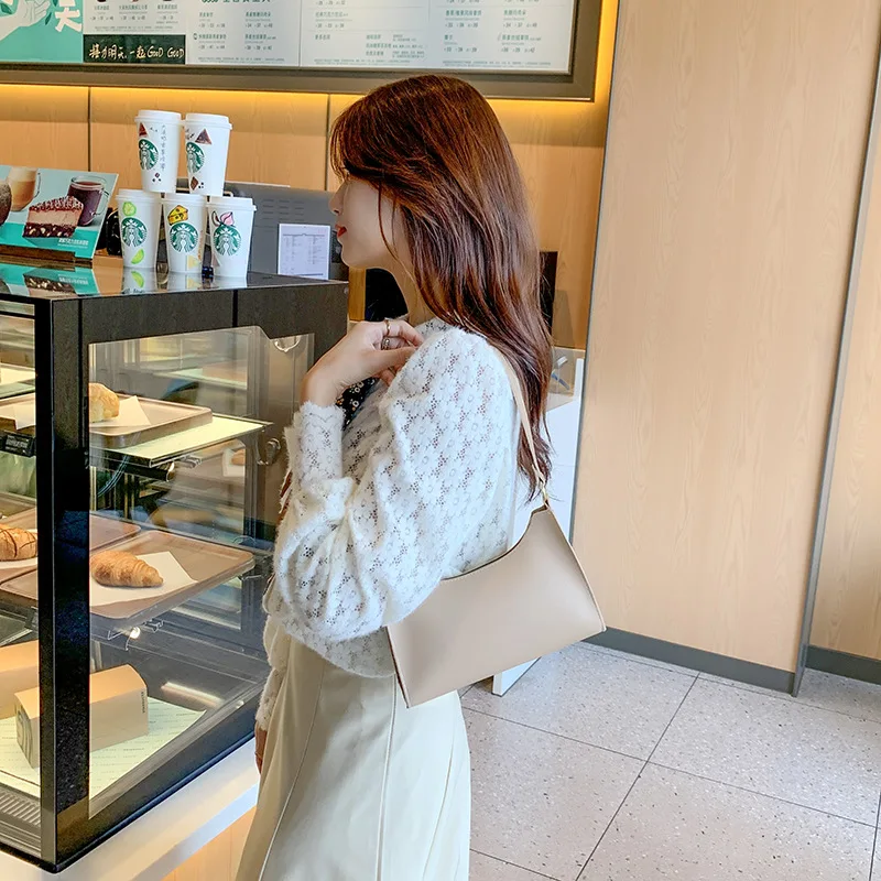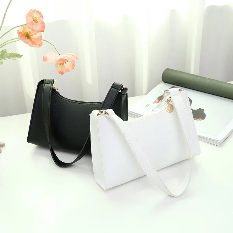 Elegant White Shoulder Bag Handbags for Women Small Leather Purse Hobo Underarm Bags Ladies Trendy Half Moon Shoulder Clutch Bag