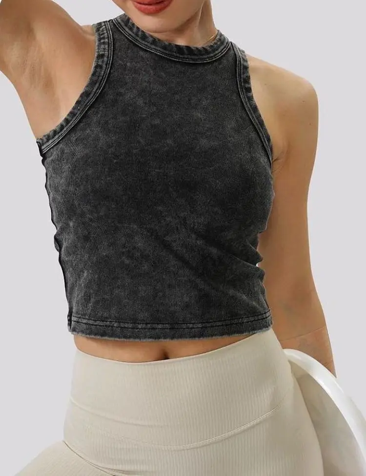Women Summer American Retro Distress Cotton Crop Tops S-XXL Casual Make Old Vintage Comfortable Style Heavyweight Soft Tops