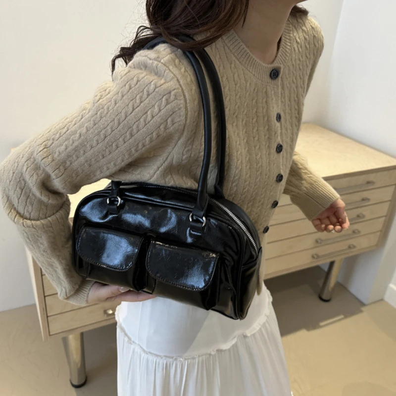 Vintage Simple Ladies Commute Tote Bag Women Business Shoulder Bags Pu Leather Female Underarm Burgundy Large Handbags Purse