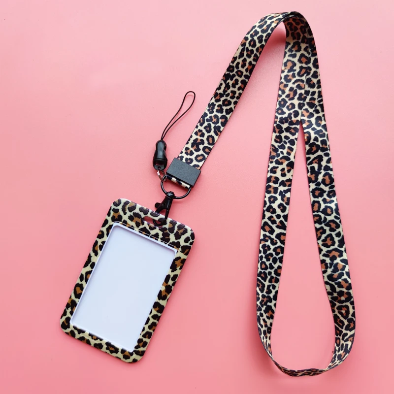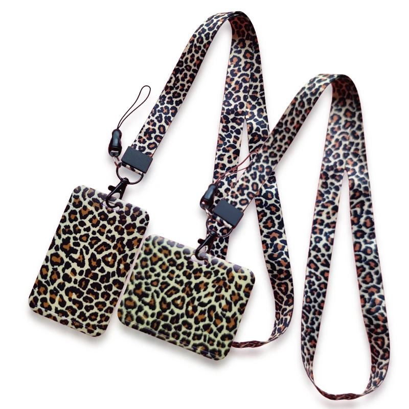 Leopard Print Identification Card Holder lanyards Key chain Cartoon Card Case ID Badge Holder Neck Strap Credentials