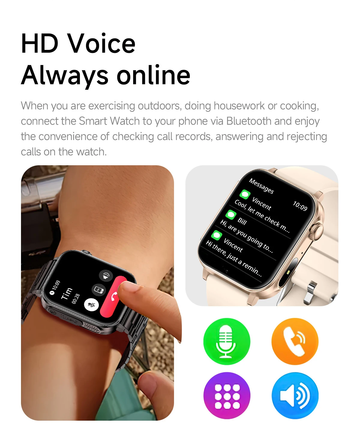 Smart Notifications: Receive calls, messages, and app alerts directly on your wrist, so you never miss a beat.