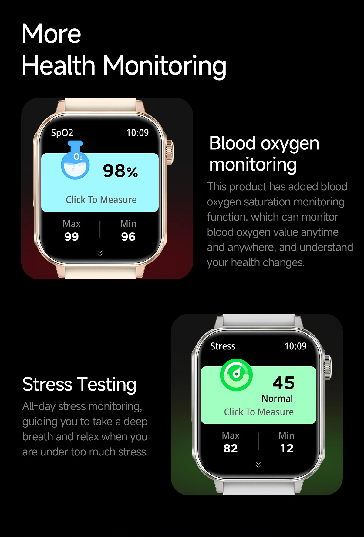 Comprehensive Health Tracking: Monitor your heart rate, blood oxygen, sleep patterns, and more to gain valuable insights into your well-being.
