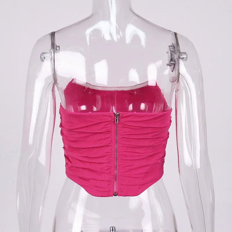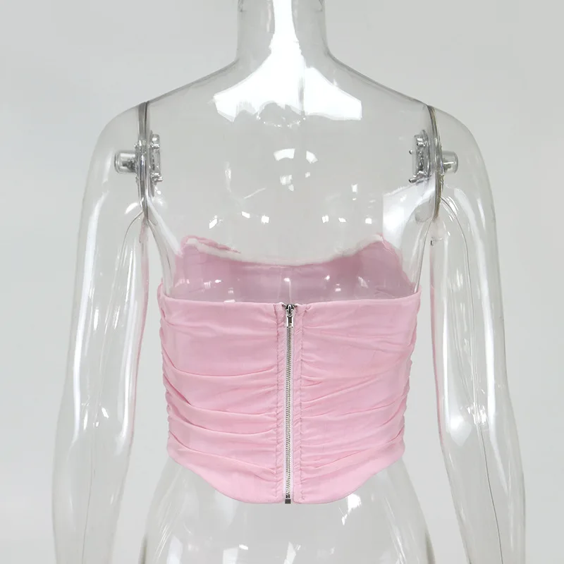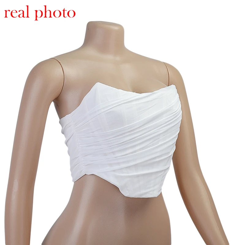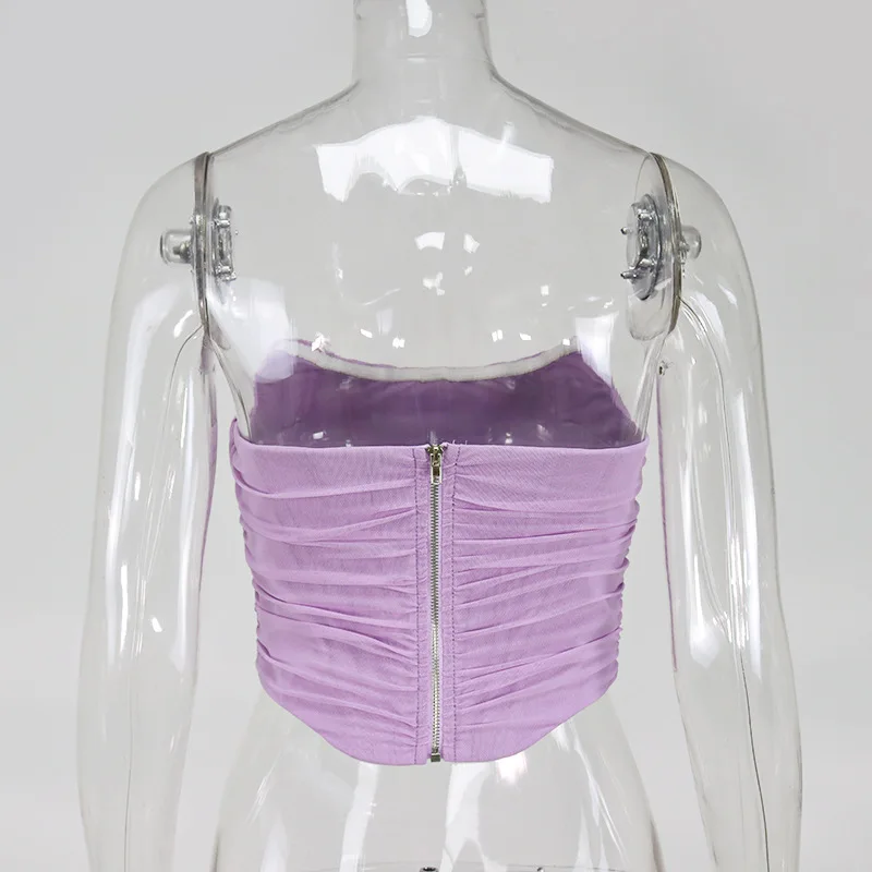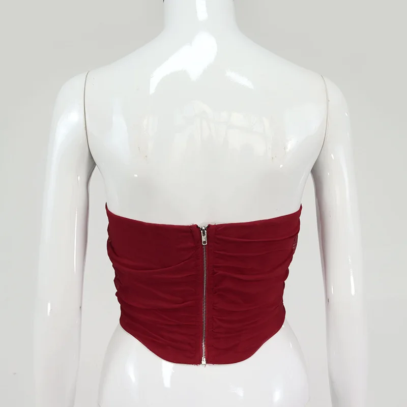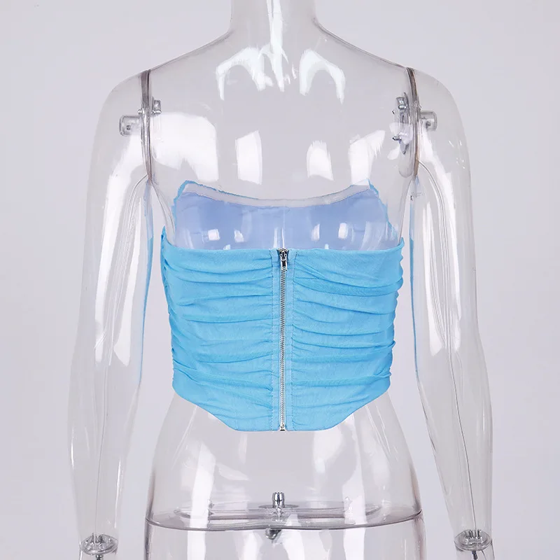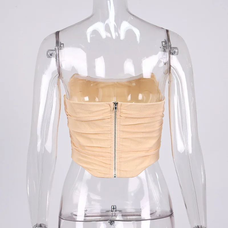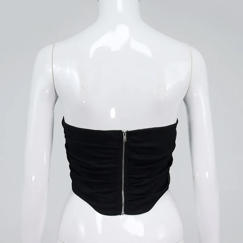 Cryptographic Sleeveless Fashion Strapless Bustier Corset Crop Tops Female Mesh Backless White Women Tops Zipper Summer 2025