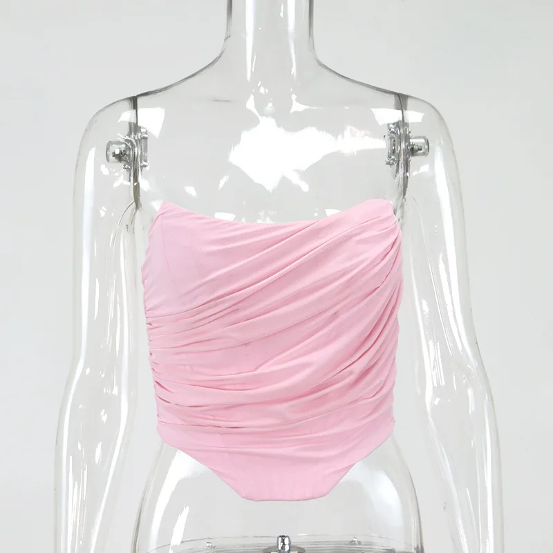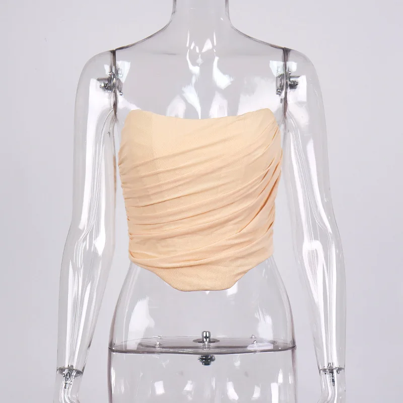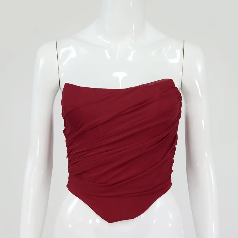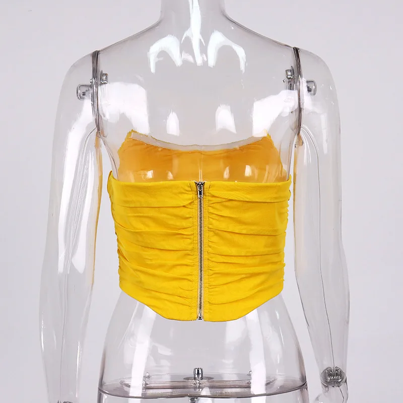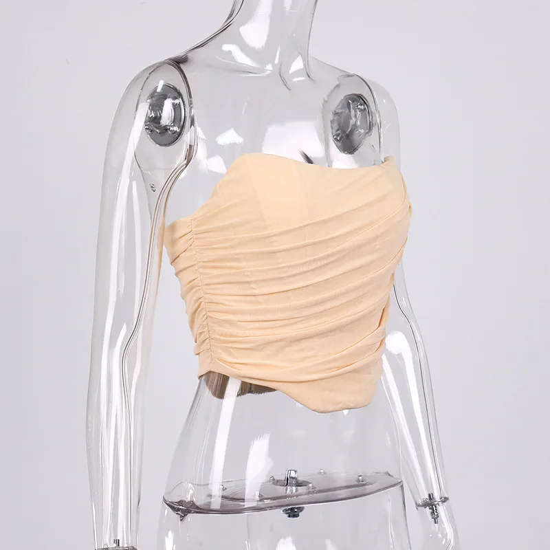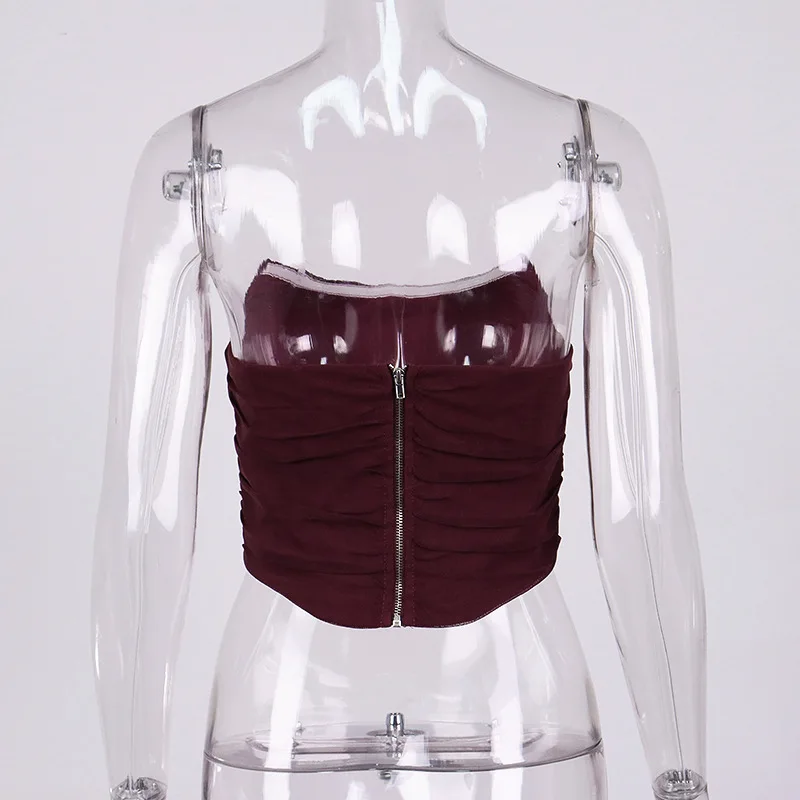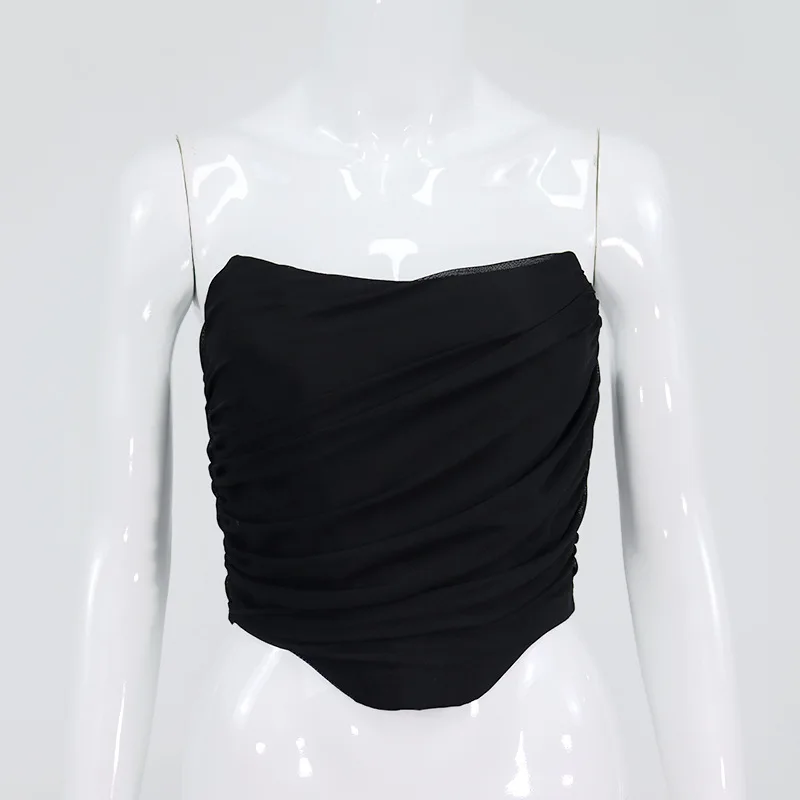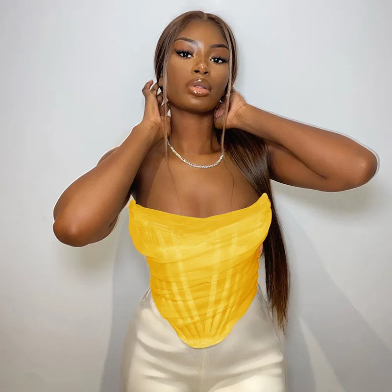 Cryptographic Sleeveless Fashion Strapless Bustier Corset Crop Tops Female Mesh Backless White Women Tops Zipper Summer 2025
