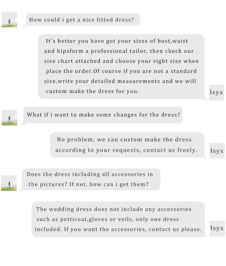 7.All the dresses are copies from the web pages,not exactly same absolutely.but we try our best to make the dress close to the pictures.so please purchase rationally.though it is cheaply.