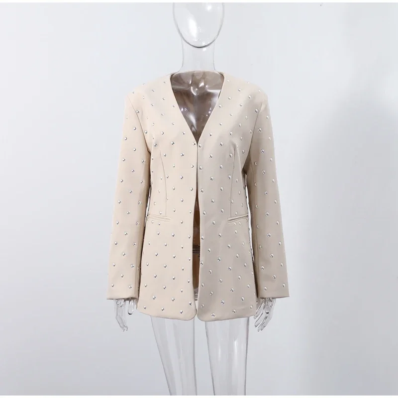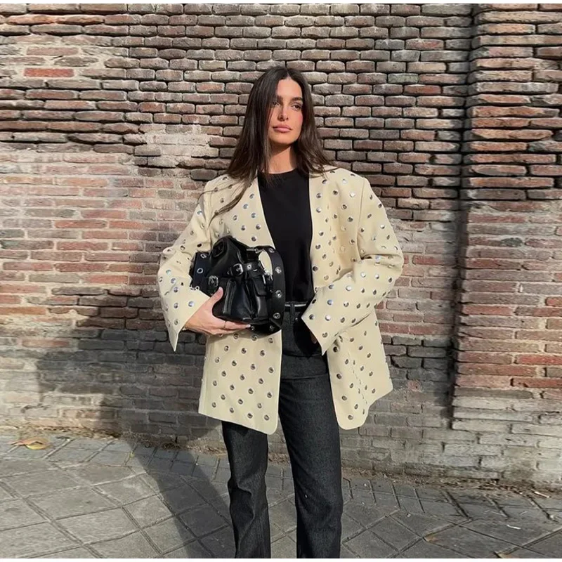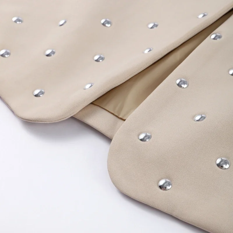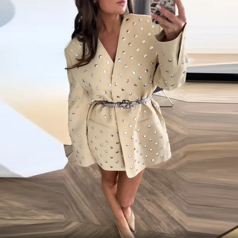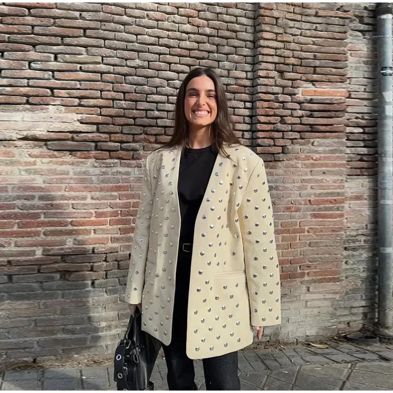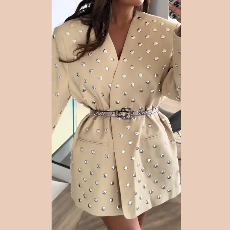 Street Rivet Suit Coat Women Fashion V-neck Full Sleeve Coats Female 2025 Spring Summer Chic Casual Commute Oversize Lady Jacket