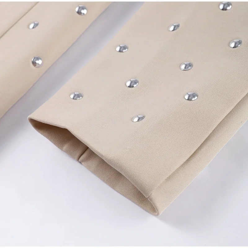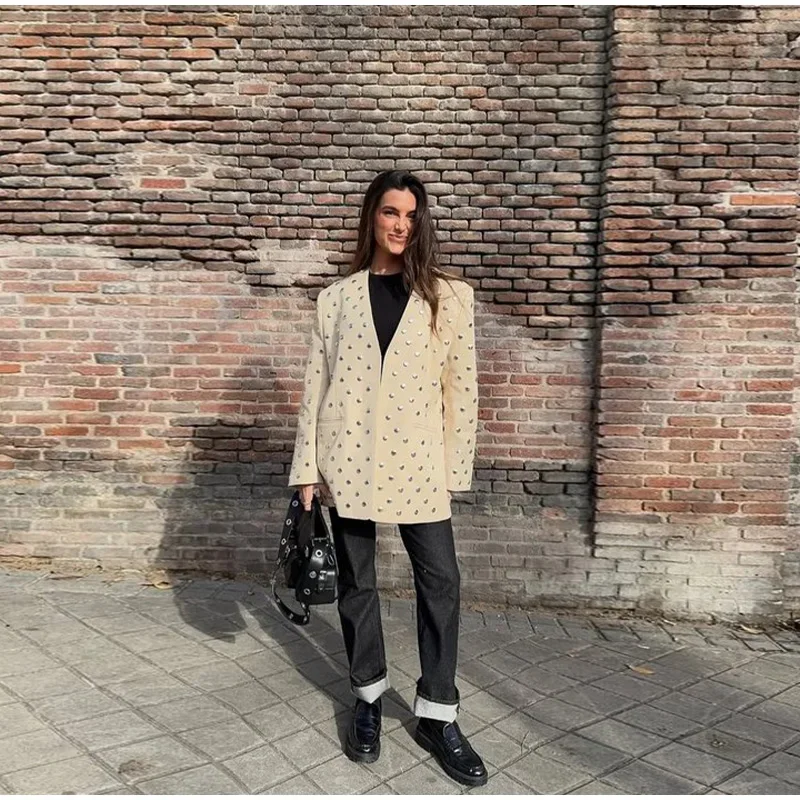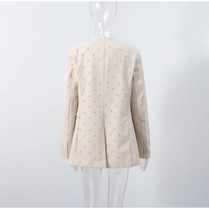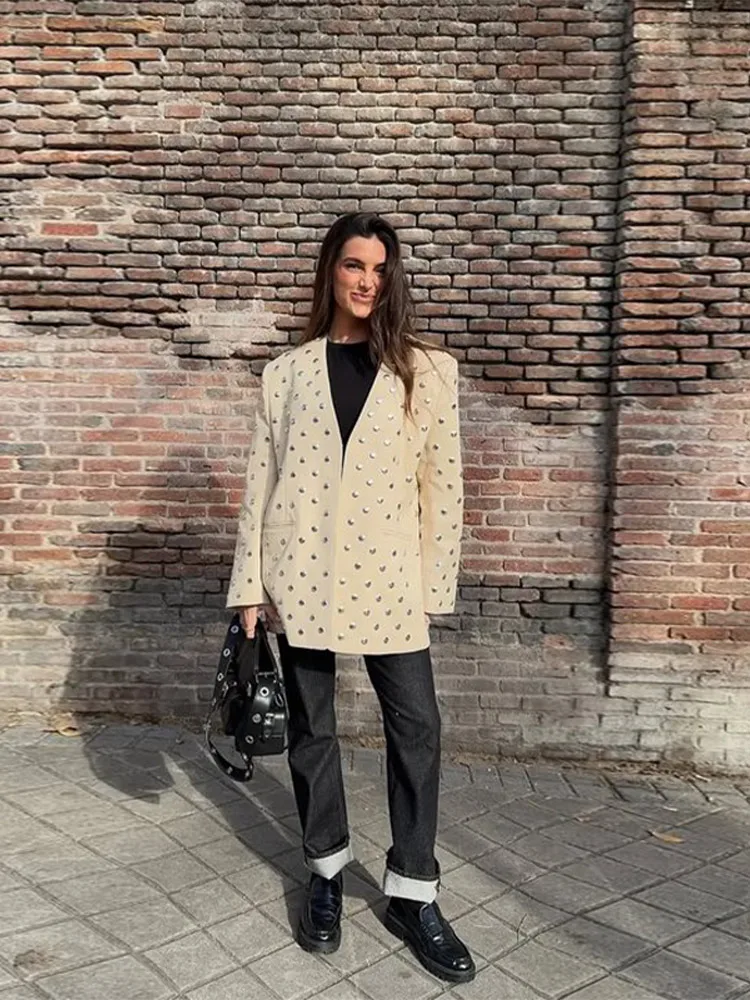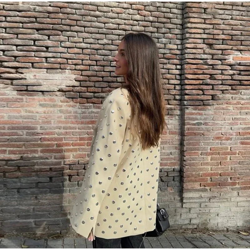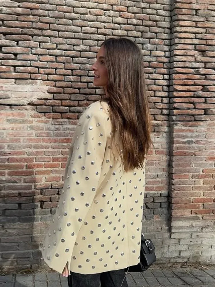 Street Rivet Suit Coat Women Fashion V-neck Full Sleeve Coats Female 2025 Spring Summer Chic Casual Commute Oversize Lady Jacket